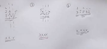 ①、当双抹出现时,大指和食指各接一个上下行的刮揍;