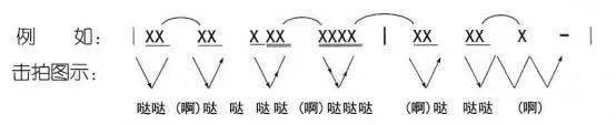 乐曲中表示固定单位时值和强弱规律的组织形式,常见的打拍子方式有画V,拍手。一下(↓为前半拍)一上(↑为后半拍)的动作就视为一拍。